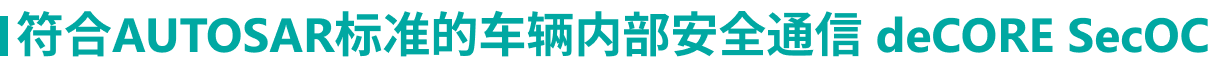deCORE SecOC能够解决车辆内部通信的身份真实性、内容完整性和抗重放问题。支持HSM/SHE、纯软件密码算法;完备的SecOC软件配置和测试验证工具。